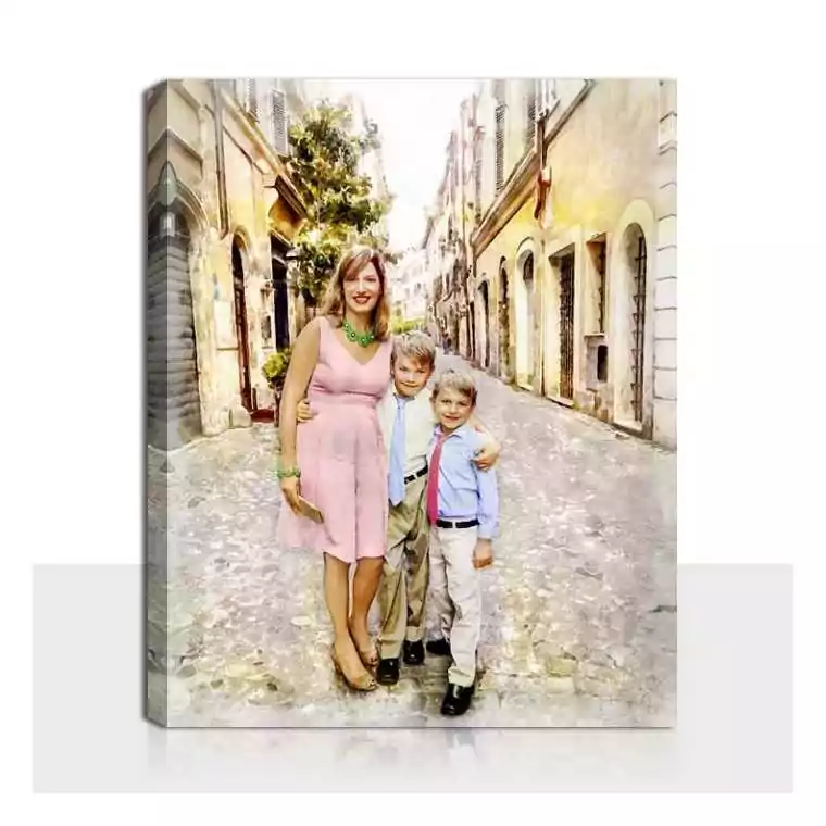 Your pictures professionally made into beautiful artwork on canvas in water color portrait style.