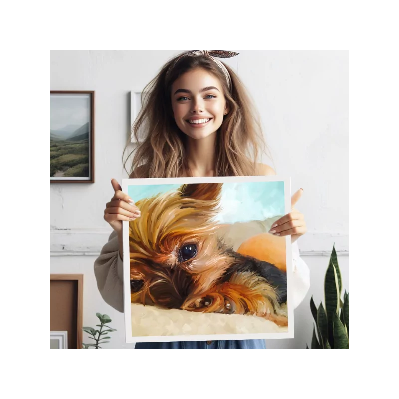 Our team of highly skilled artists are ready to accommodate your special wishes, such as removing scratches or changing unwanted elements in the background. Your dog photos are transformed into timeless works of art and you have the final say. Before shipping out, you can request a preview of your canvas by selecting the "Eproof" option. We'll email you the proof, and upon your approval, we'll complete and ship out your painterly dog portrait. Best of all, we offer you a 30-day money-back guarantee, allowing you to return or exchange the painting within 30 days if you're not satisfied with the outcome.
