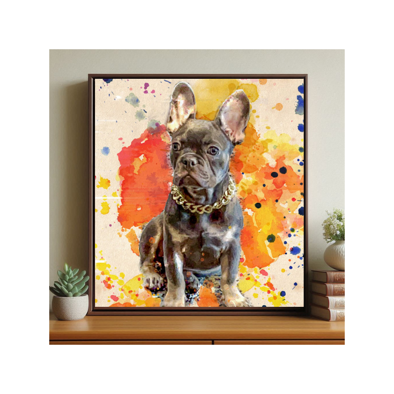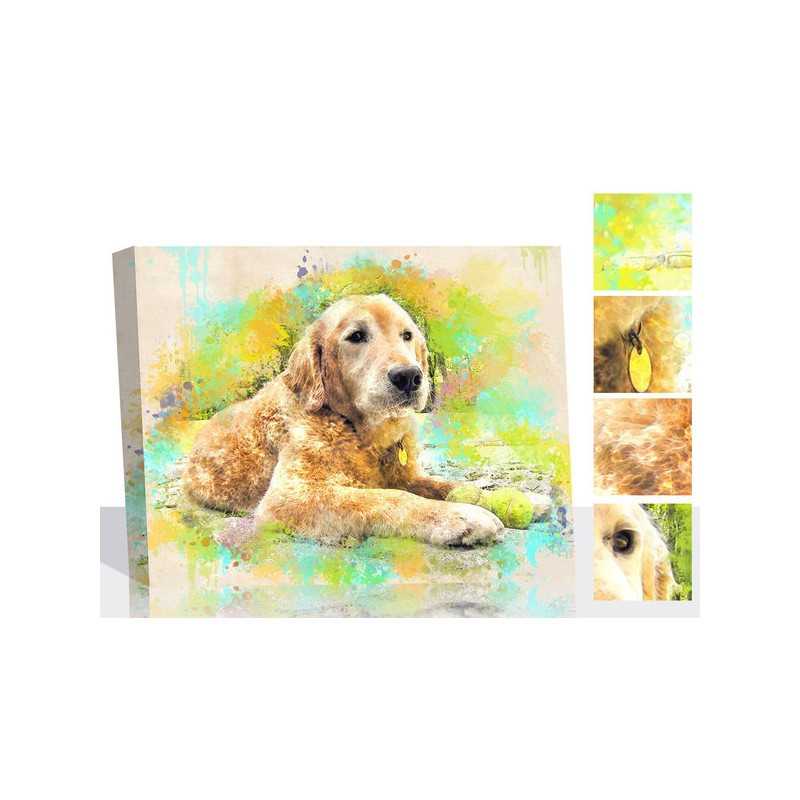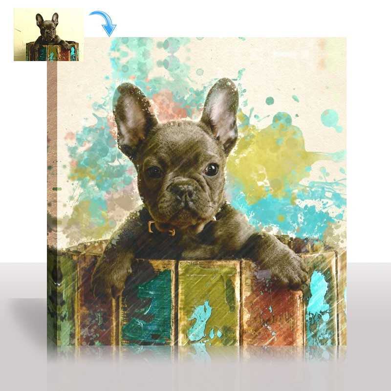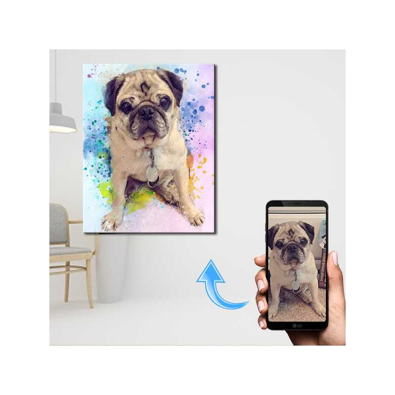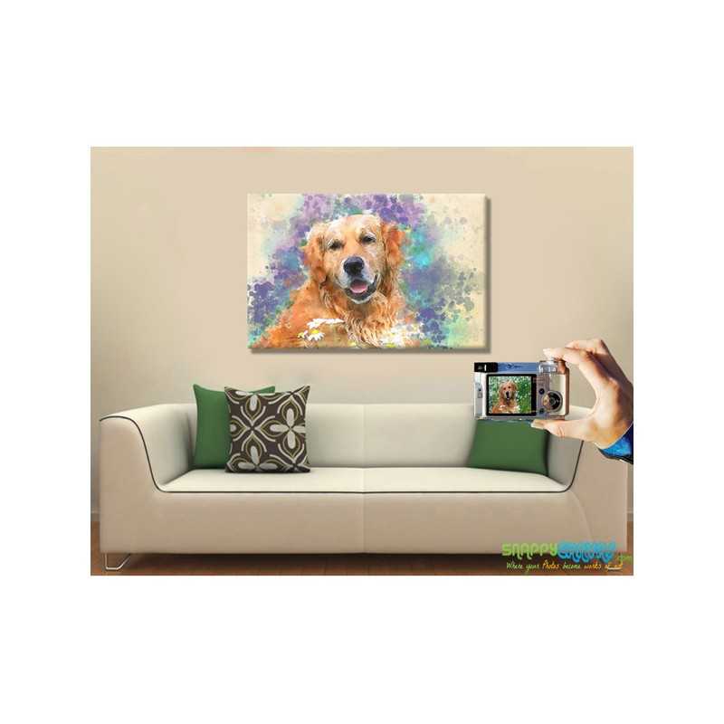 Imagine the surprise when they see their dog's photo modified into our fashionable Color Splash style painting with the help of our outstanding Snappy Canvas portrait painters. It's beautiful dance of colors unleashes the vivacity of your personalized dog portrait painting. Bringing an air of both positivity and playfulness to any decor. Makes an ideal gift for any dog or pet enthusiast. Also, can be a very uplifting choice for a dog memorial painting if you or a friend has recently lost their sweet and furry pal. One that is sure to brighten everyone's spirits.