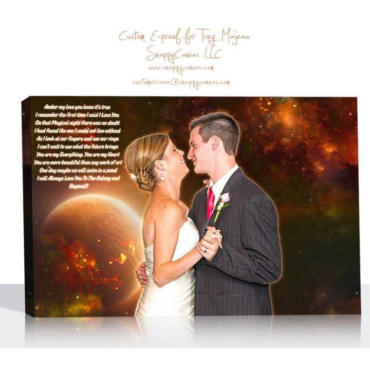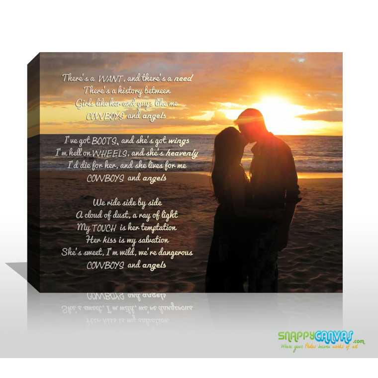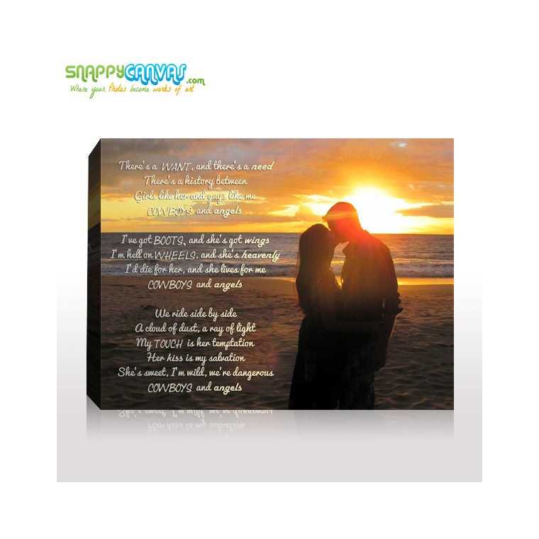 Poetic Canvas style is great for pre-nuptial pictures, engagement pictures or as wedding photos. Your favorite photo is lovingly accompanied by the poetic words on canvas of your choice. Whether it is a Shakespearean sonnet, a poem by e.e. cummings or one you made yourself such as your wedding vows, this is the perfect style to showcase your photos with. Add your personal adn meaningful words on canvas to make a lasting and impactful canvas portrait. Or include a favorite inspiring or loving quote. Let your message live on with your words from the heart on canvas.
