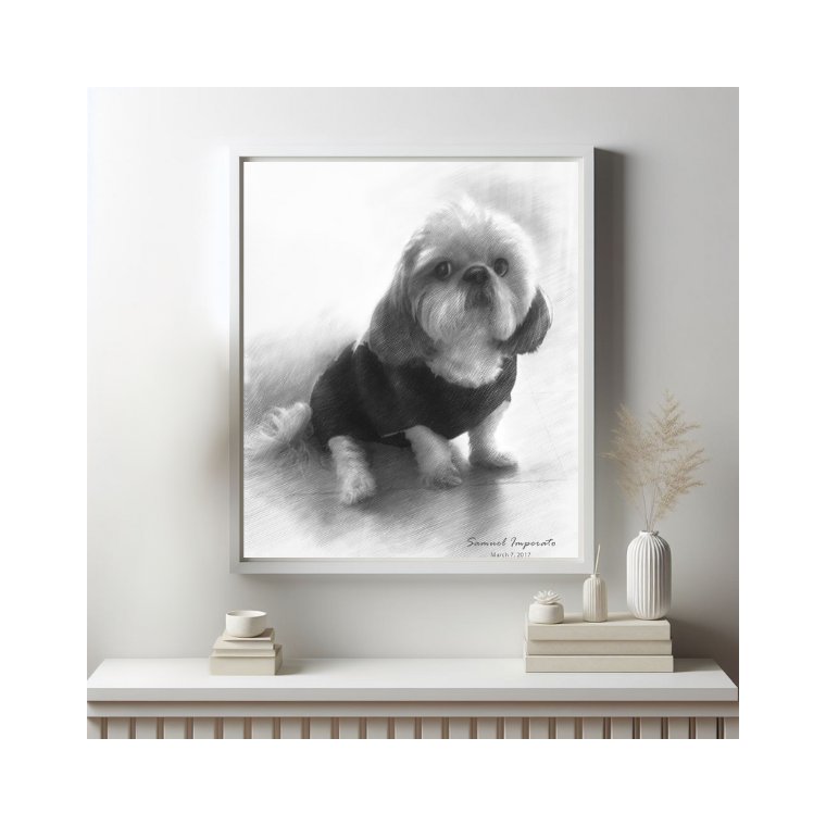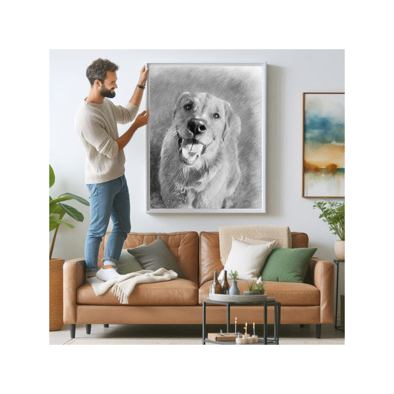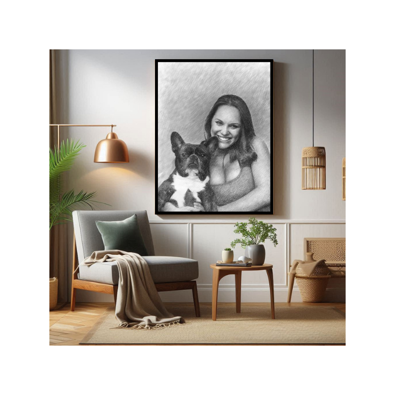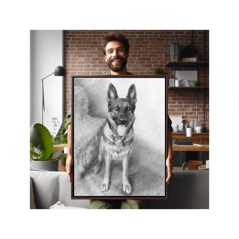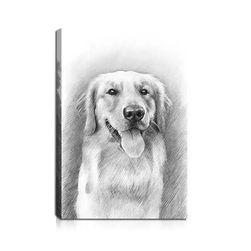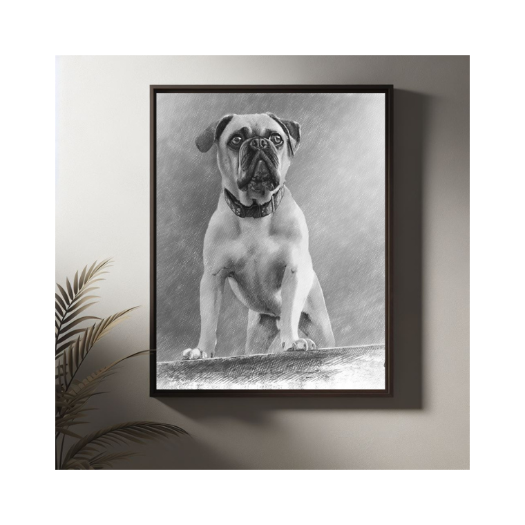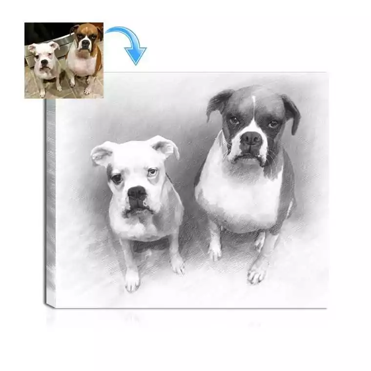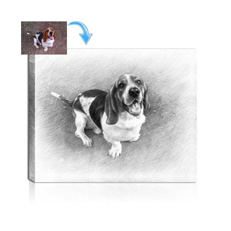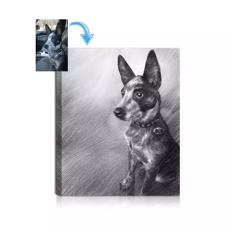 We make turning your pet picture into a pet sketch simple and hassle free. All you need to do is upload or send us your picture and select size and finish, and we will take care of the rest. Naturally you may be concerned about the results of your pet pencil pencil portrait, and worry if it will come out splendidly. To alleviate your fears with our e-proof option we send a digital proof of your pencil pet portrait right to your e-mail of your hand digitally sketched custom pet sketch portrait, for your review. If you are just not feeling it, let us know what you would like changed. We’ll revise it and send you a new pet sketch proof until you are ready for us to complete and ship. With our 100% satisfaction guarantee you can rest comfortably assured that we stand behind our work. Want to capture the personality of your pet forever in a beautiful pencil portrait? A custom-made pencil portrait is perfect for the special furry friend in your life, and you can hang it proudly on your walls or display it on a mantel. Get your pet's likeness immortalized today! Visualize your beloved pet on canvas with a pencil portrait sketch by an artist. From Instagram or digital photos, the chosen artist will turn facial structure and fur into lines and shadows, creating a masterpiece.