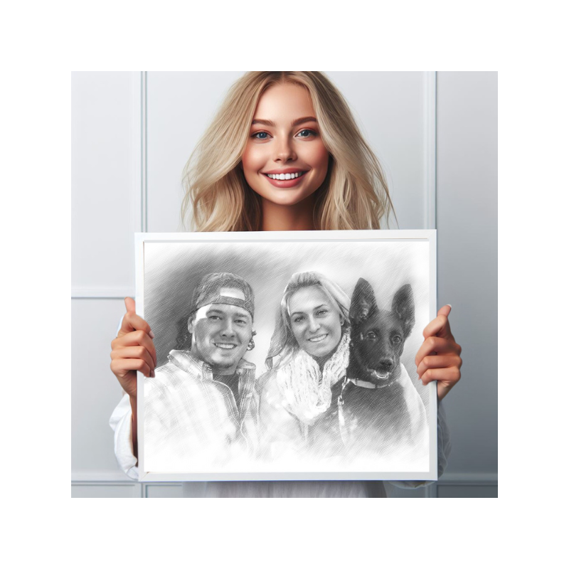 Our pet sketch Artists understand that your pets are an important part of your life and take delicate care to in making your personalized pencil style sketch. We also believe in creating high quality work and without sacrificing on materials. Whether it is 5 years from now or 75 years, we want you to be able to look back and view your pencil pet portrait in admiration. Get a custom pencil portrait of your pet! These handcrafted portraits are the perfect way to immortalize your beloved furry friend. Get yours today! Cherish the memory of your beloved pet forever with a custom-crafted pencil portrait! Get the perfect gift for any animal lover - a detailed and intricately rendered pencil portrait of your pet that captures their unique character and personality. Showcase your pet’s unique personality with a canvas Pencil Sketch of their portrait! A skilled artist will have your pet sketched on a durable premium poly cotton canvas, perfectly capturing every trait of their character. It’ll be shipped to you in sturdy packaging so that it arrives in perfect condition via a protective shipping box so that it arrives safe and secure.FEATURES